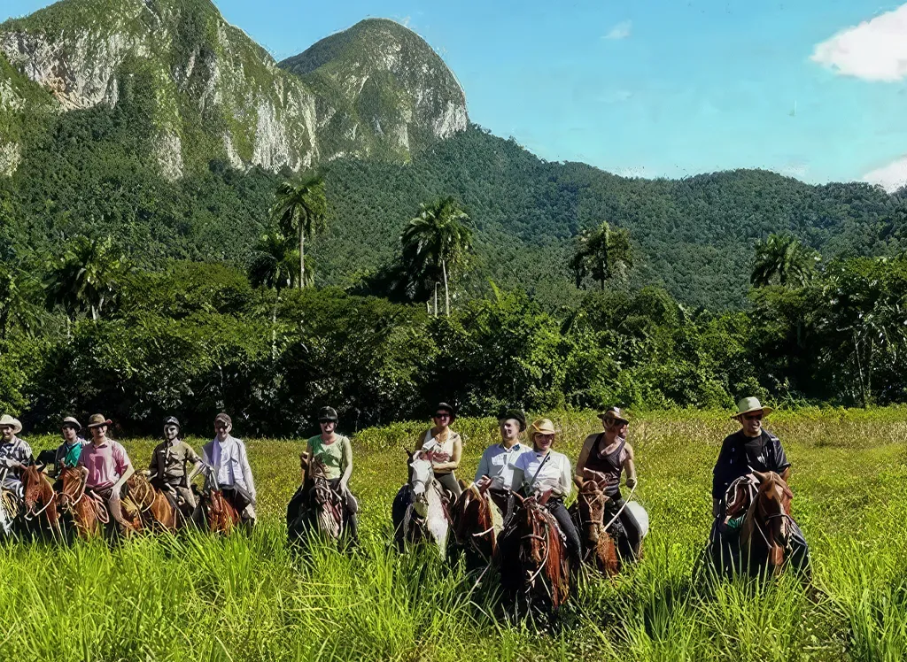 Poznaj dolinę Viñales na koniu podczas czterogodzinnej wycieczki z przewodnikiem. Odwiedź farmę tytoniu, dowiedz się więcej o produkcji tytoniu i podziwiaj wspaniałe krajobrazy doliny.