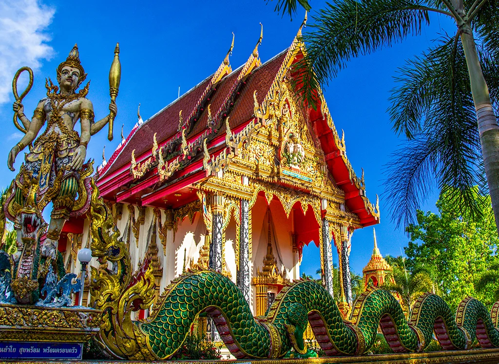 Kolejnym przystankiem jest wioska Salak Phet, gdzie odwiedzisz lokalną świątynię i dowiesz się więcej o buddyzmie. Następnie w spokojnej scenerii Salak Phet zjesz lunch. Po obiedzie wycieczka prowadzi do odległego Shambala Beach Bar w zatoce Klong Son – idealnego miejsca na relaks, kąpiel w morzu lub spacer wzdłuż plaży, z orzeźwiającym mrożonym napojem w dłoni.