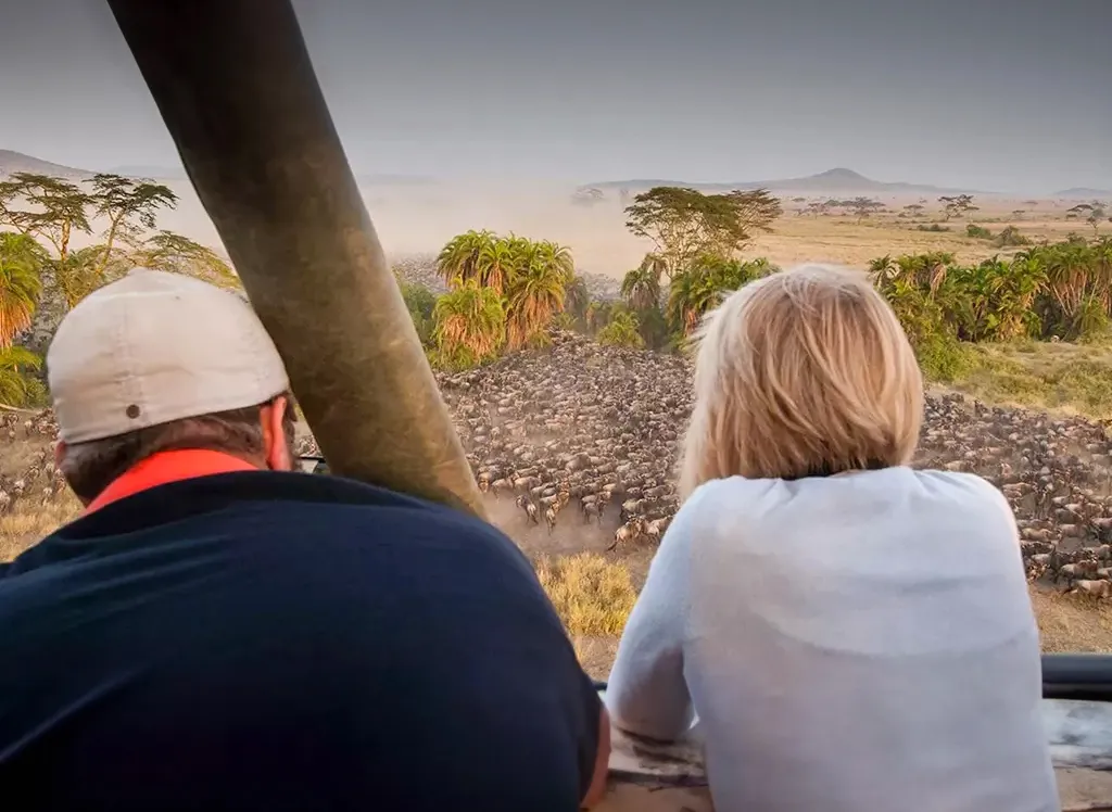 Rozpocznij dzień od niezapomnianej przejażdżki balonem nad Serengeti. Podziwiaj niesamowite widoki i dziką przyrodę, kończąc na szampanie i śniadaniu na sawannie.