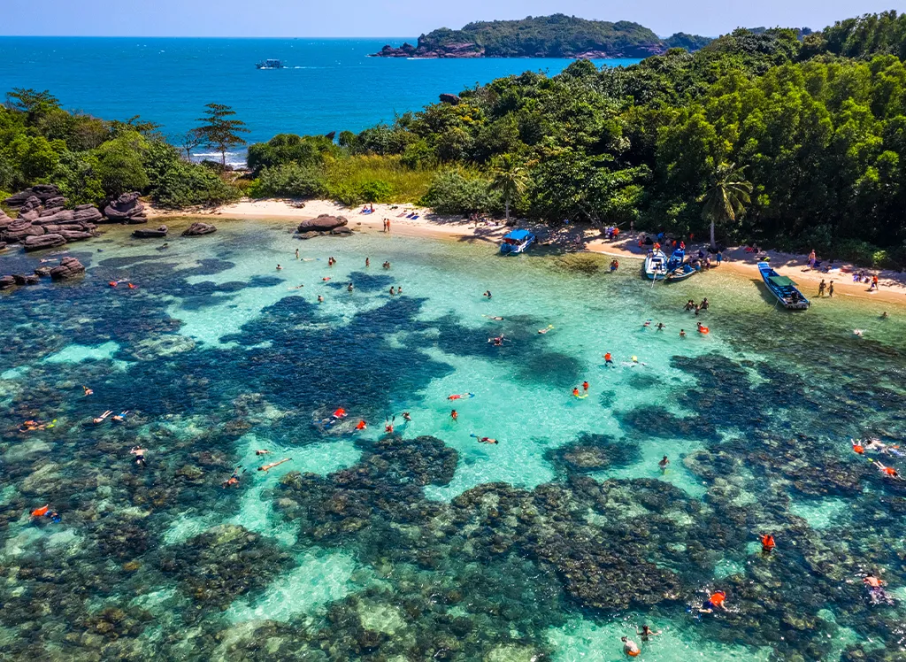 Odkryj cztery piękne wyspy łodzią motorową. Nurkowanie z rurką, SUP i lunch na May Rut Ngoai oraz relaks i przygoda na wyspach Thom i Gam Ghi.