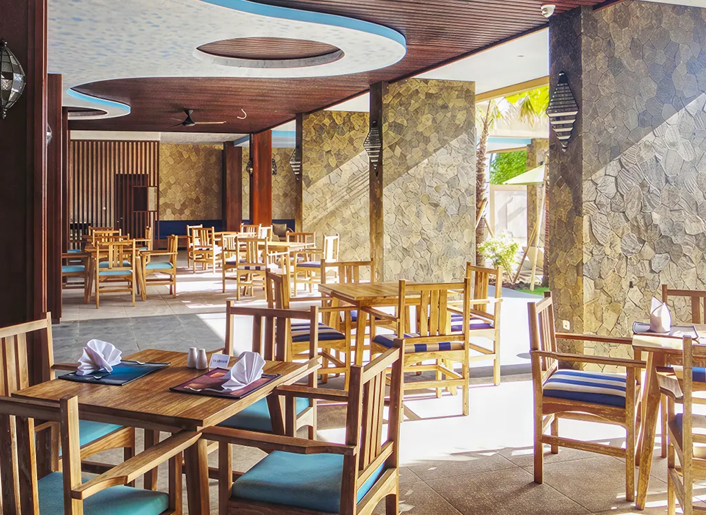 Restauracja ośrodka oferuje pyszny wybór zarówno dań międzynarodowych, jak i tradycyjnych balijskich specjałów, przygotowywanych ze świeżych, lokalnych składników. Restauracja ma również fantastyczną lokalizację przy plaży, co pozwala cieszyć się widokiem na morze podczas posiłku. Serwowane są zarówno świeże owoce morza, jak i lekkie przekąski oraz koktajle, dzięki czemu można delektować się zarówno relaksującym lunchem, jak i romantyczną kolacją w pięknej scenerii.