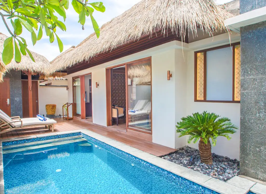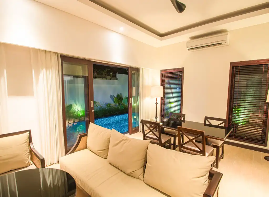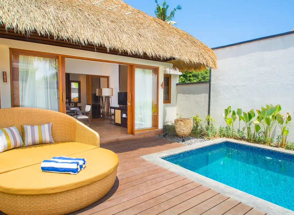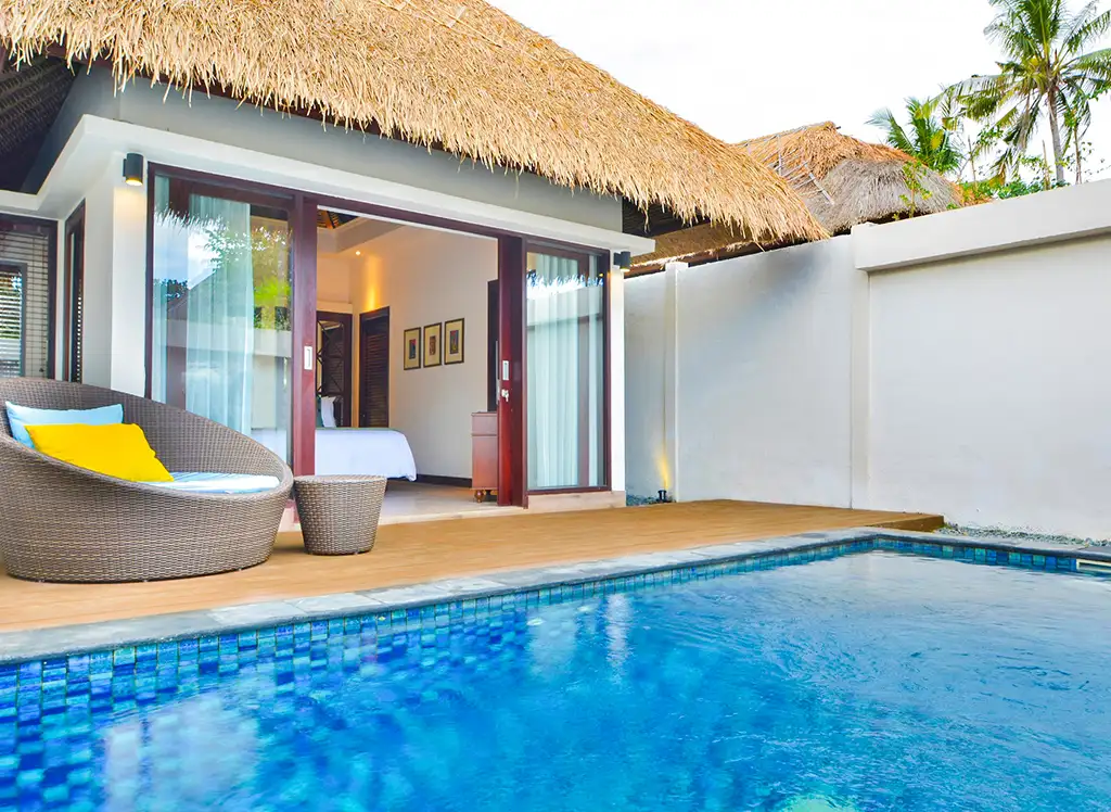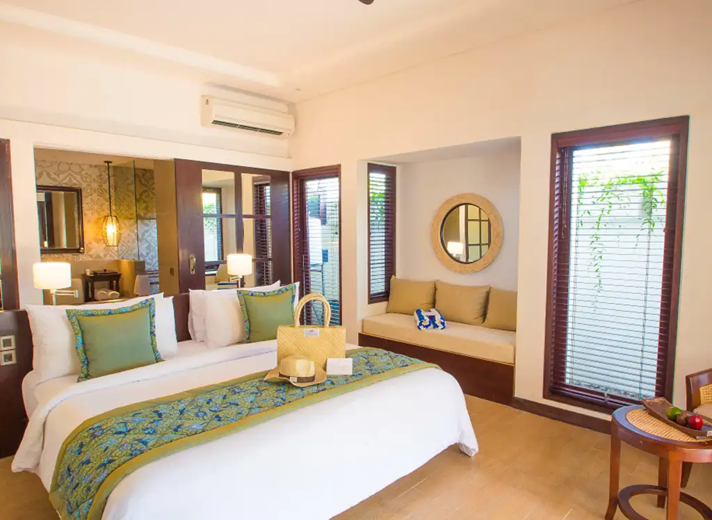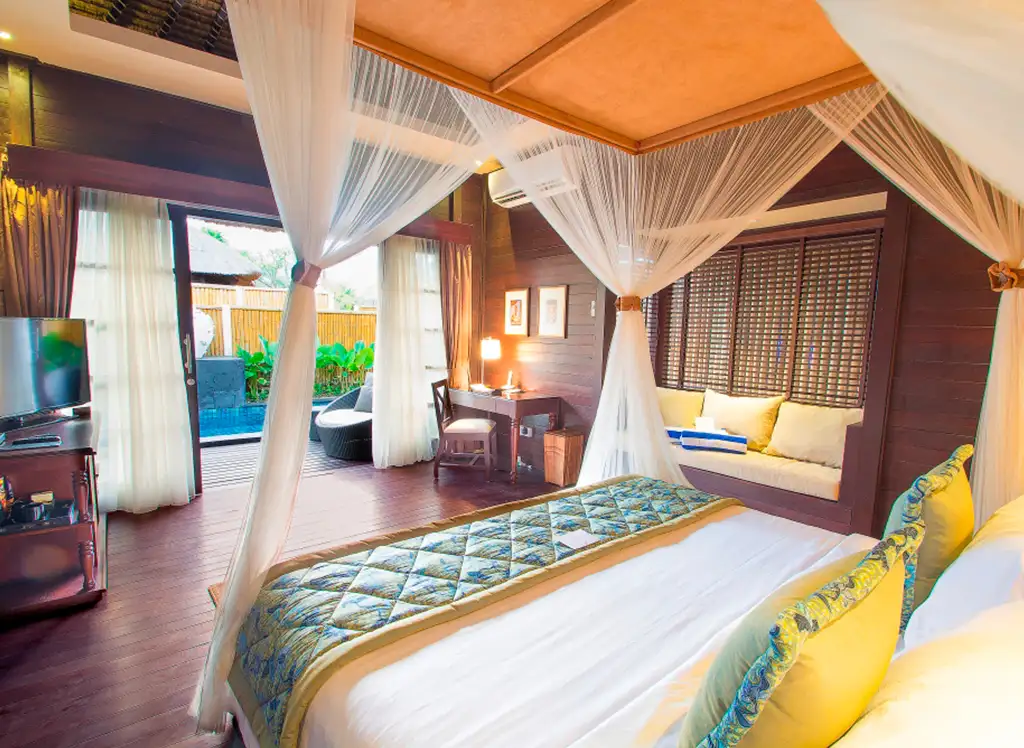 Wszystkie pokoje są pięknie urządzone, łącząc nowoczesne udogodnienia z balijskim urokiem. Pokoje wyposażone są w telewizor, prywatny balkon lub taras, klimatyzację, dostęp do Wi-Fi oraz prywatną łazienkę. Dla rodzin z 2-3 dzieci istnieje możliwość podniesienia standardu do willi z dwiema sypialniami i prywatnym basenem, gdzie cała rodzina może mieszkać razem.