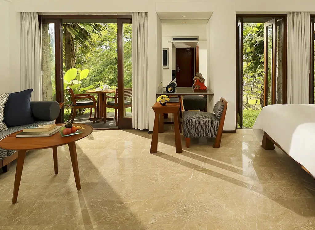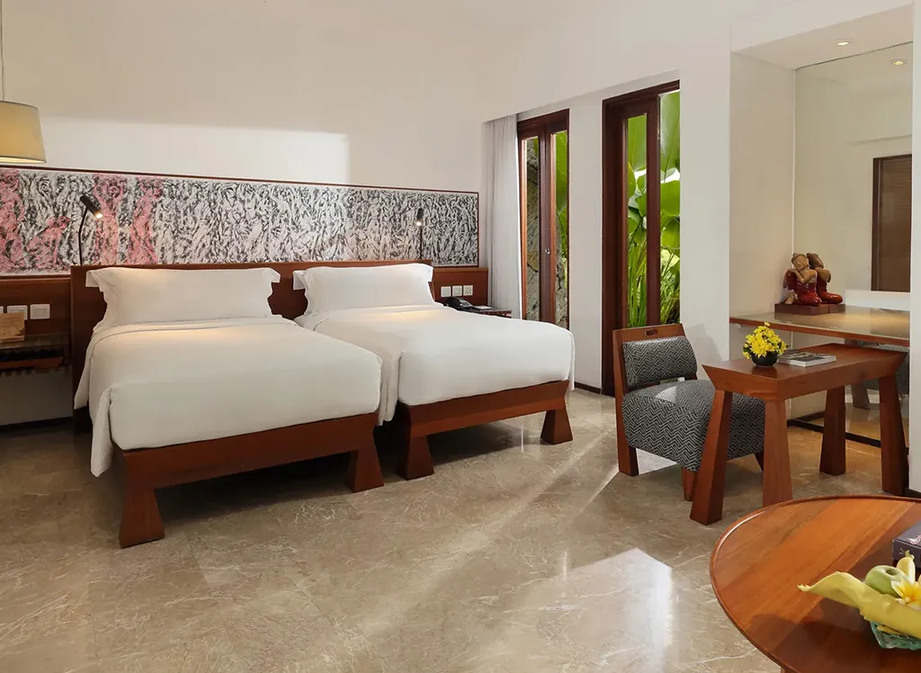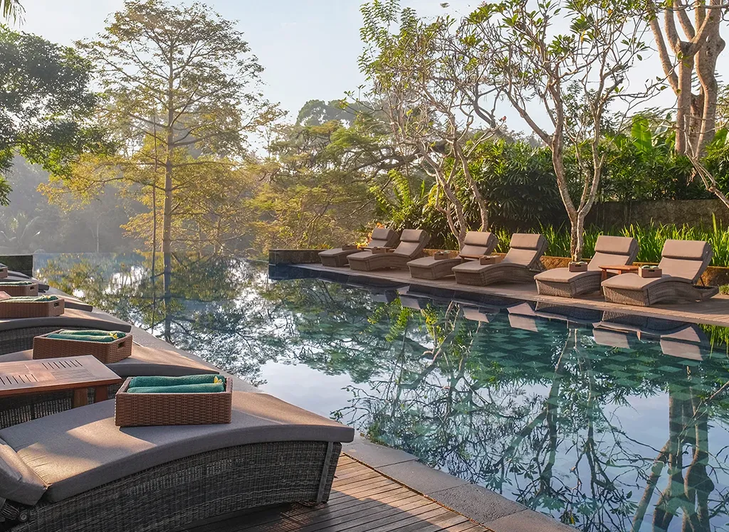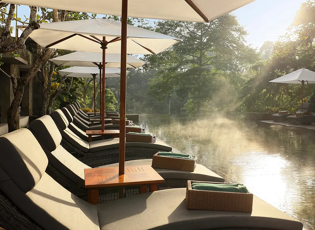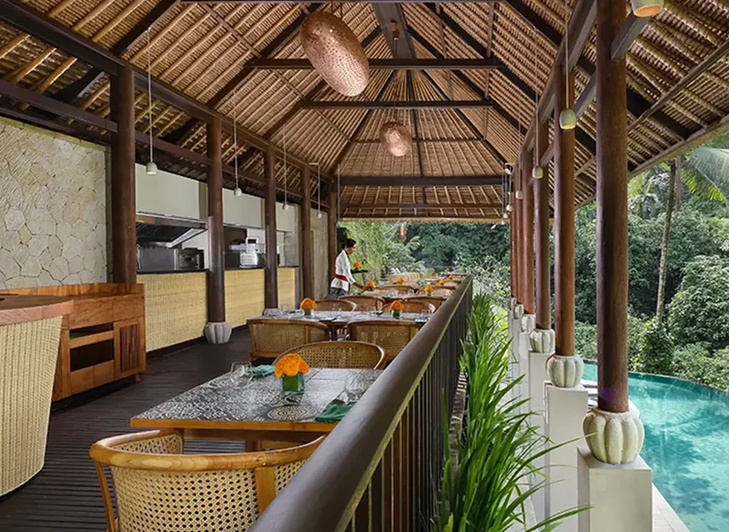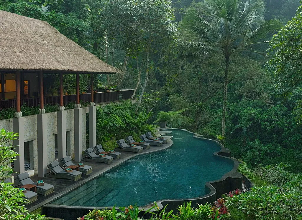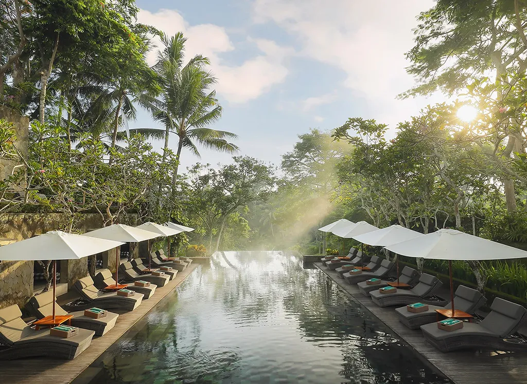 Pięciogwiazdkowy hotel w Ubud z dwoma basenami, spa, centrum fitness, wieloma restauracjami i lekcjami gotowania. Blisko do sklepów i kultury. Pokoje z balkonem, minibarem, Wi-Fi.
