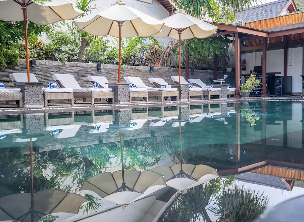 Przytulny hotel przy plaży na Gili Trawangan z basenem, centrum nurkowym i restauracją - Scallywags Trawangan Resort. Znajdź swoje wymarzone wakacje na wyspach Gili tutaj.