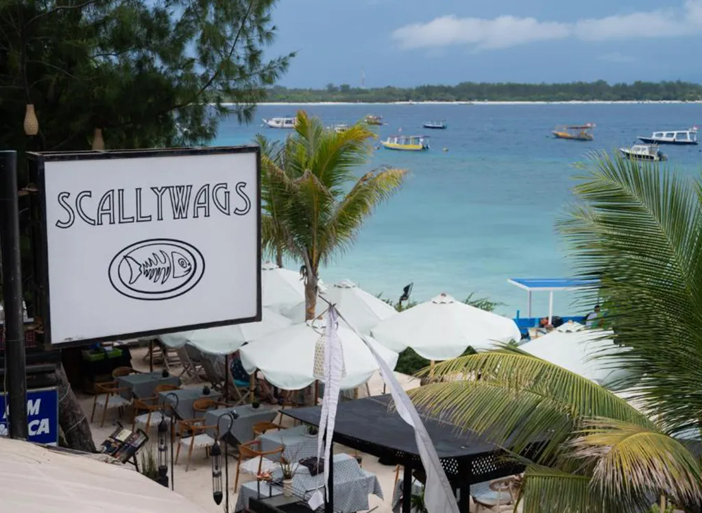 Położony na południowo-wschodnim wybrzeżu Gili Trawangan, z fantastycznym widokiem na Mount Rinjani i wybrzeże Lomboku, oraz jedynie 5 minut spacerem od portu, znajduje się Scallywags Trawangan Resort.