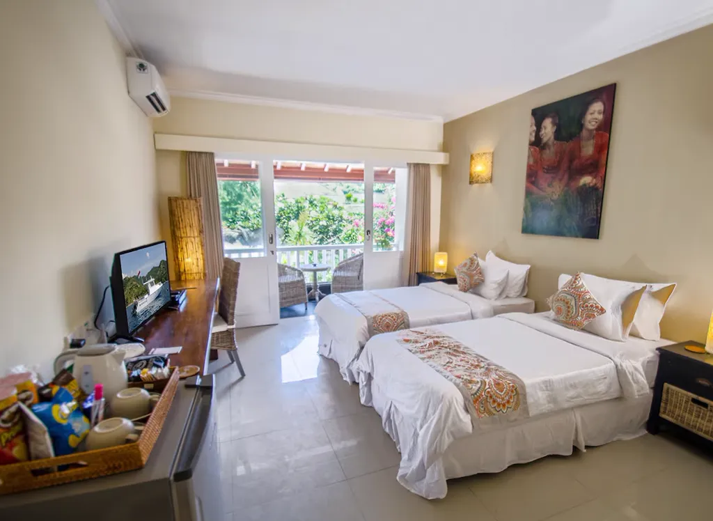 Wszystkie pokoje w Scallywags Trawangan Resort są pięknie urządzone i wyposażone w klimatyzację, sejf, telewizor, lodówkę i czajnik elektryczny, a także prywatną łazienkę z ciepłą i zimną wodą, szlafroki i bezpłatne artykuły toaletowe.