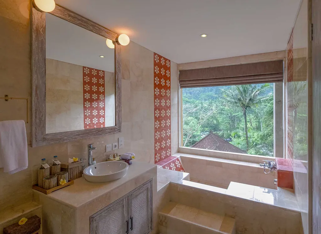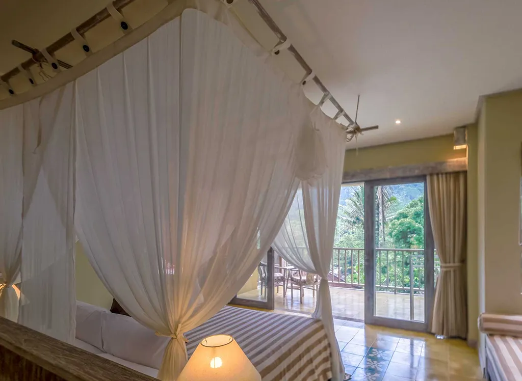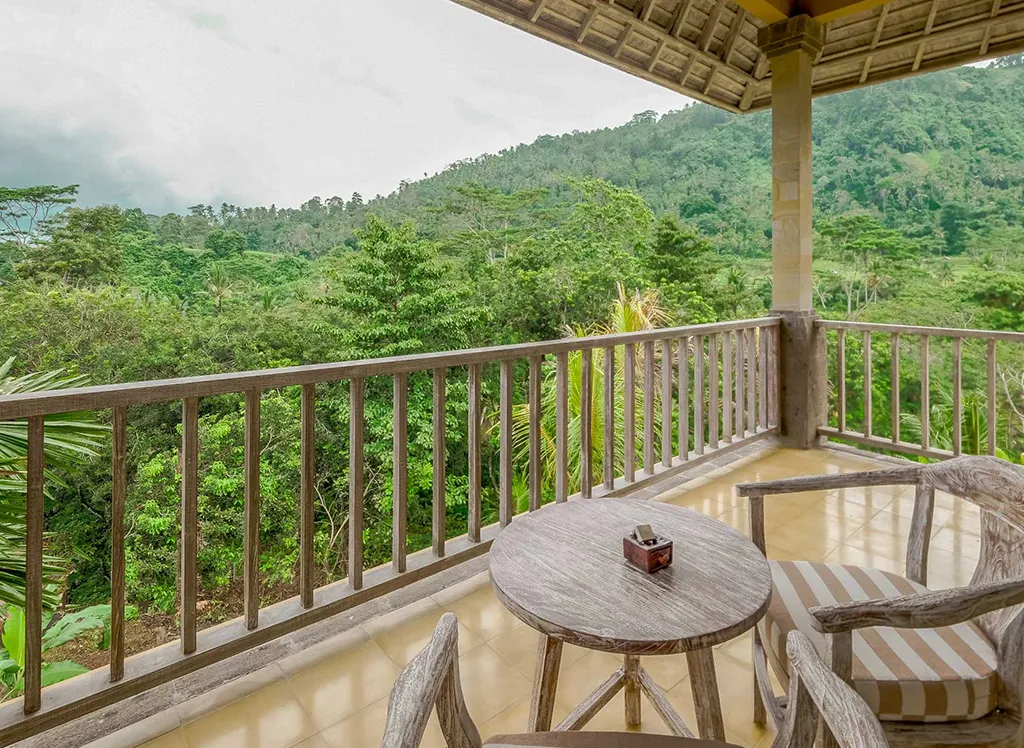 Pokoje w hotelu wyposażone są w łóżko podwójne lub dwa pojedyncze łóżka. Dostępna jest klimatyzacja, minibar i prywatna łazienka. Dodatkowo masz prywatny balkon lub taras, skąd możesz podziwiać piękny widok na pola ryżowe lub bujne lasy.