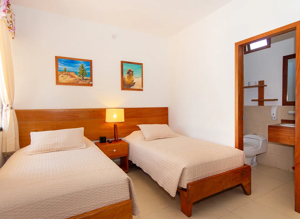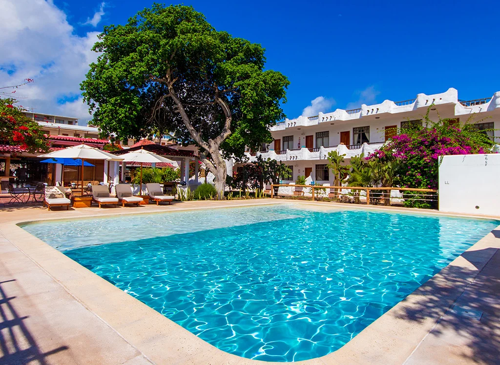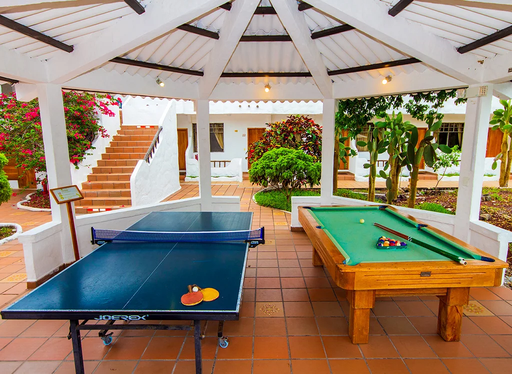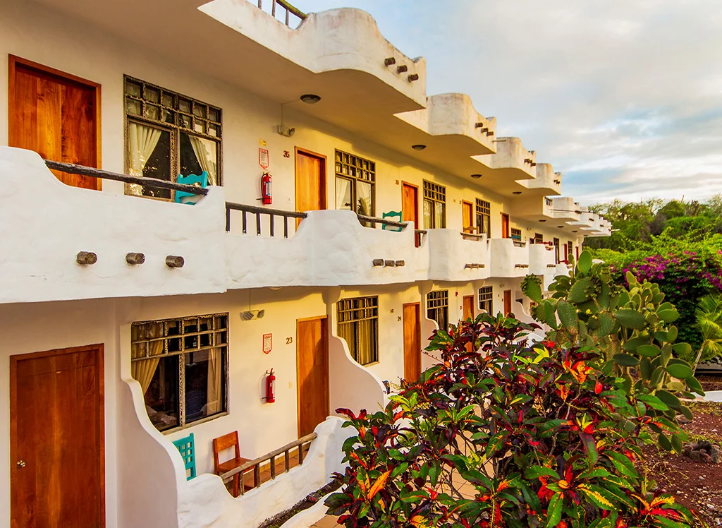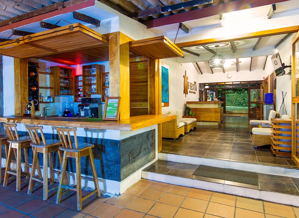 Zatrzymaj się w centrum wyspy Santa Cruz w hotelu Fiesta: komfortowe pokoje, restauracje, basen i jacuzzi – idealny punkt wyjścia do odkrywania Galápagos.