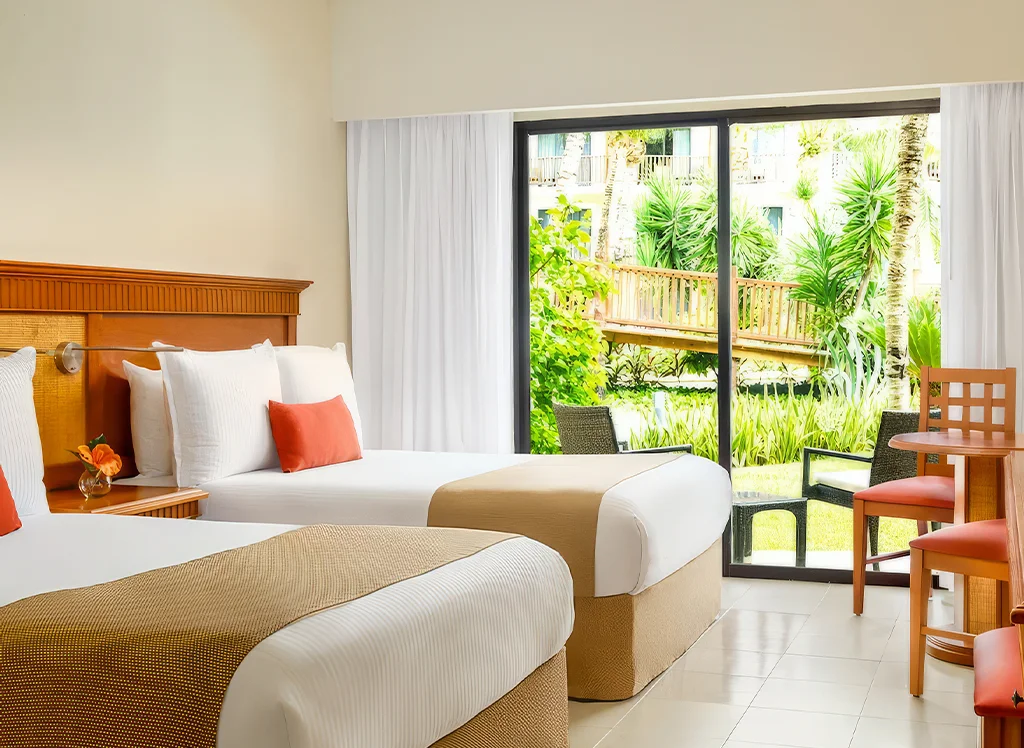 Pokoje są przestronne i urządzone w jasnym, karaibskim stylu. Pokoje wyposażone są w łóżko podwójne lub dwa pojedyncze łóżka. Wszystkie pokoje mają klimatyzację, balkon lub taras, Wi-Fi i sejf, dzięki czemu masz zarówno komfort, jak i praktyczne udogodnienia przez cały pobyt.