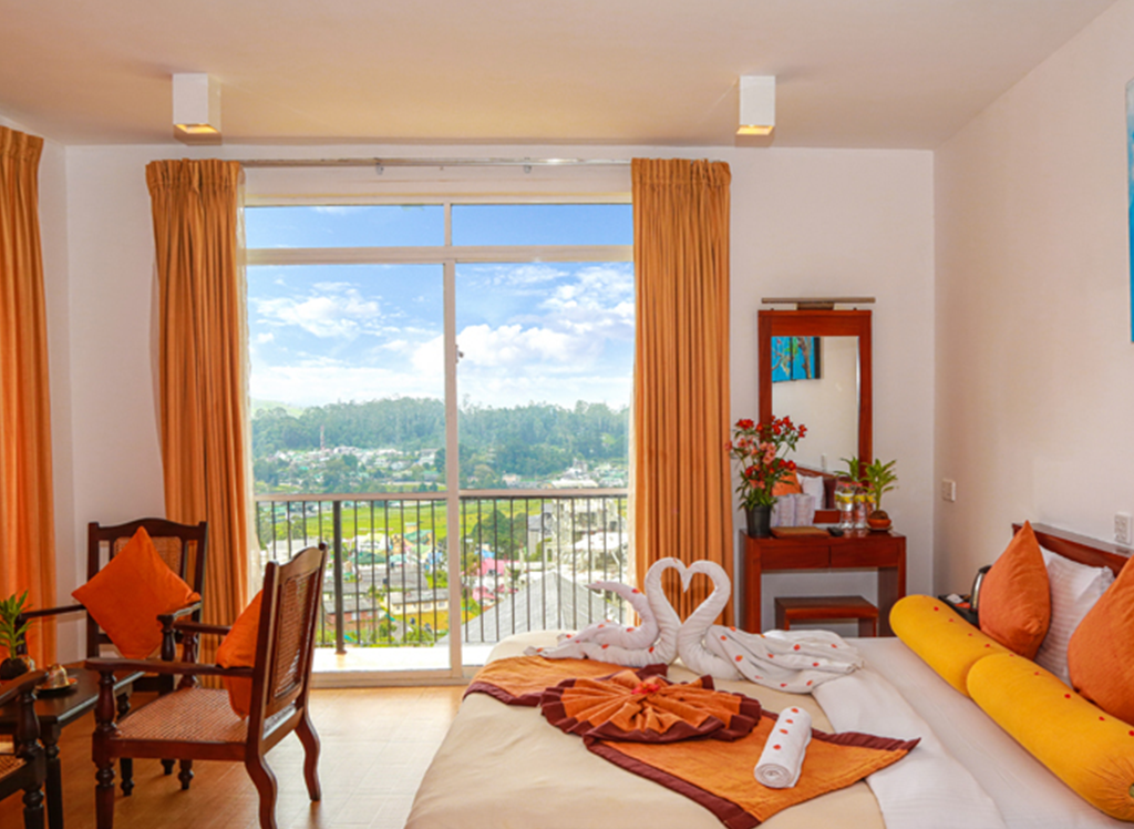 Hotel oferuje wspaniały widok na zielone plantacje herbaty, jezioro Gregory oraz najwyższą górę Sri Lanki – Pidurutalagala.
