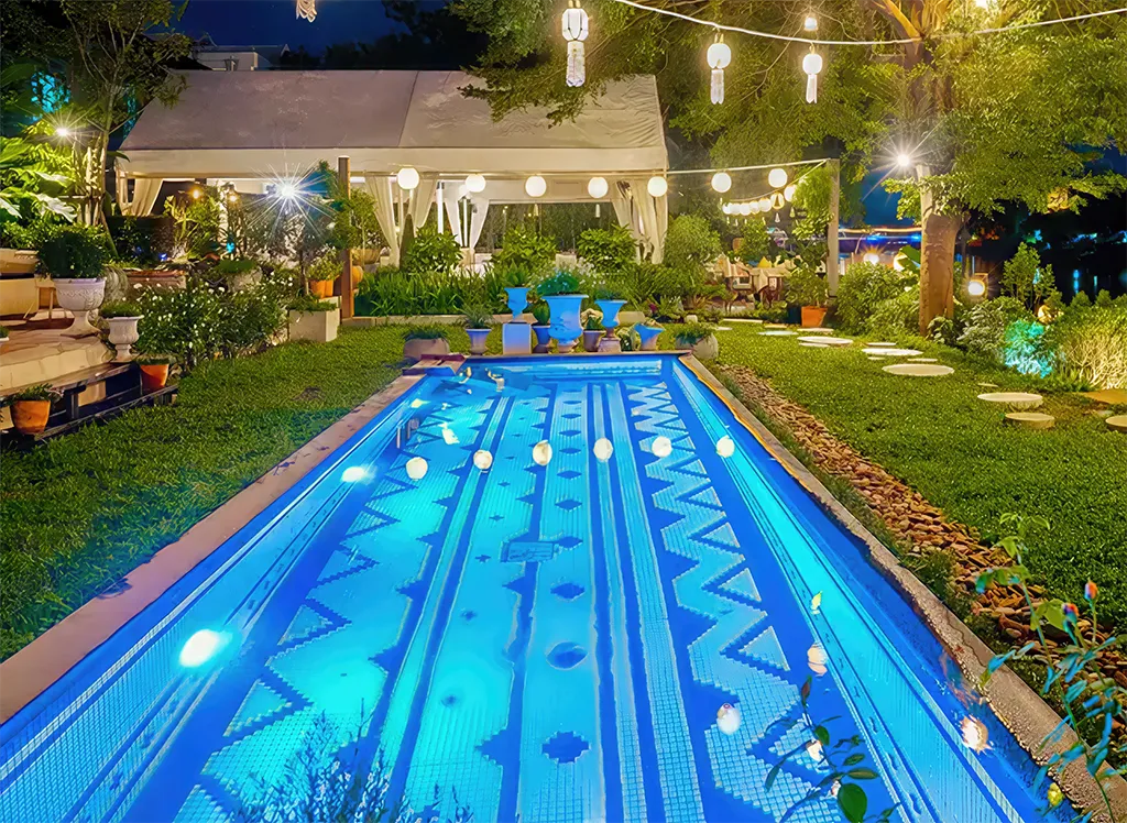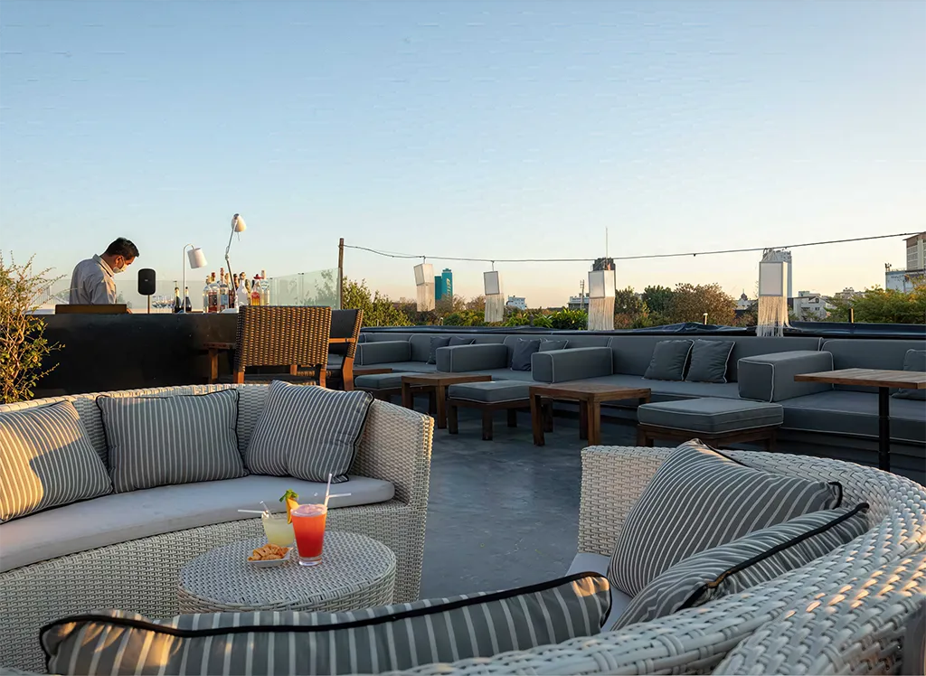 Na terenie hotelu znajdują się dwa wspaniałe baseny, w których można się zrelaksować, gdy potrzebujesz przerwy od zwiedzania. Jeden z nich znajduje się w ogrodzie, a drugi na urokliwym tarasie na dachu, gdzie mieści się również przytulny bar serwujący zimne piwo, wino i kolorowe koktajle, z przepięknym widokiem na rzekę i zachód słońca.