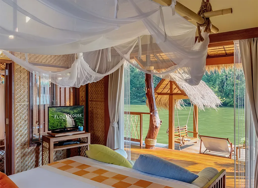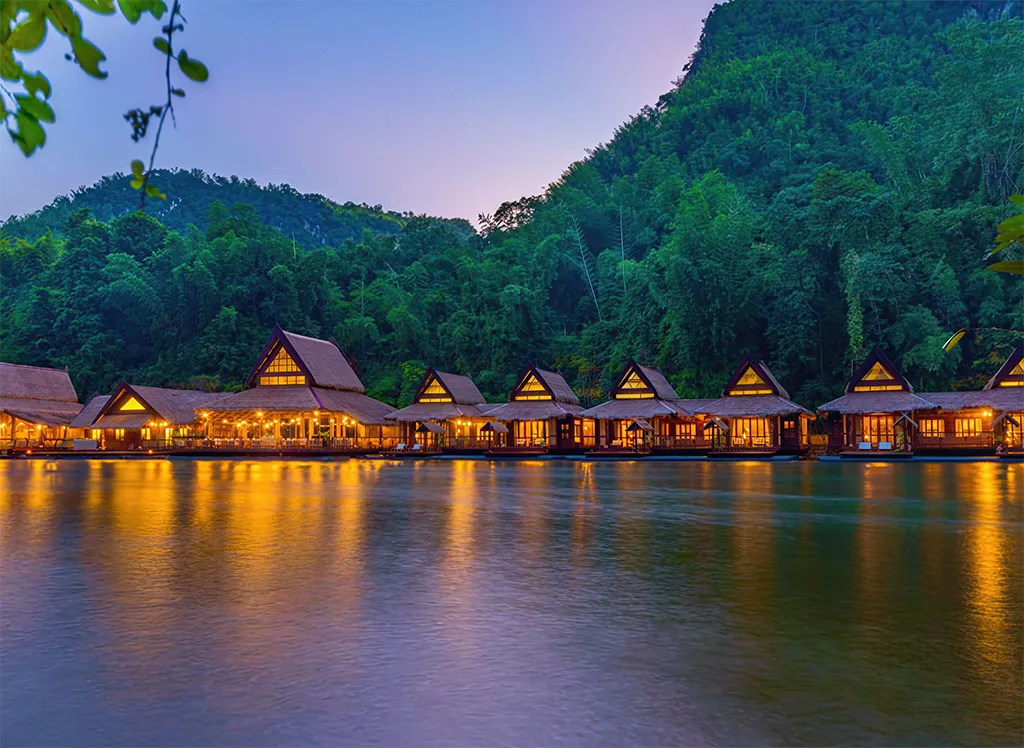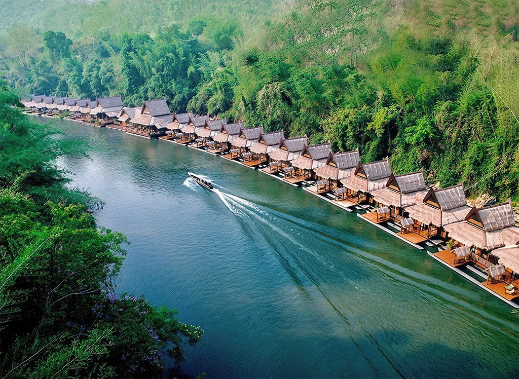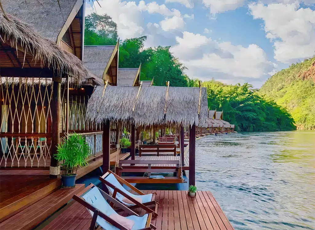 Witamy w The FloatHouse River Kwai – luksusowym, pływającym ośrodku, który położony jest w otoczeniu zielonych gór oraz bujnej dżungli nad kultową rzeką Kwai.
