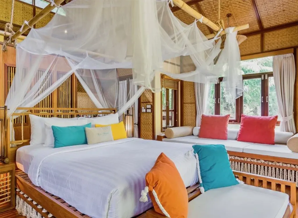 W The FloatHouse River Kwai zamieszkasz w luksusowej i przestronnej, pływającej willi z dachem krytym strzechą i meblami z drewna tekowego oraz klimatyzacją, lodówką i telewizorem. Każda willa posiada również prywatny taras z niesamowitym widokiem na rzekę Kwai. Należy pamiętać, że dostęp do energii elektrycznej jest ograniczony i zazwyczaj dostępny jest od wieczora do rana.