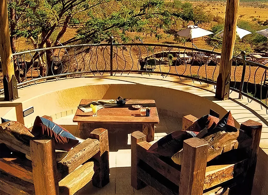 Większość lodge w Afryce Wschodniej ma tradycyjne afrykańskie dachy kryte strzechą, jednak ta lodge jest inna – posiada płaski dach, co pozwala cieszyć się drinkiem na tarasie na dachu, podziwiając zachód słońca.