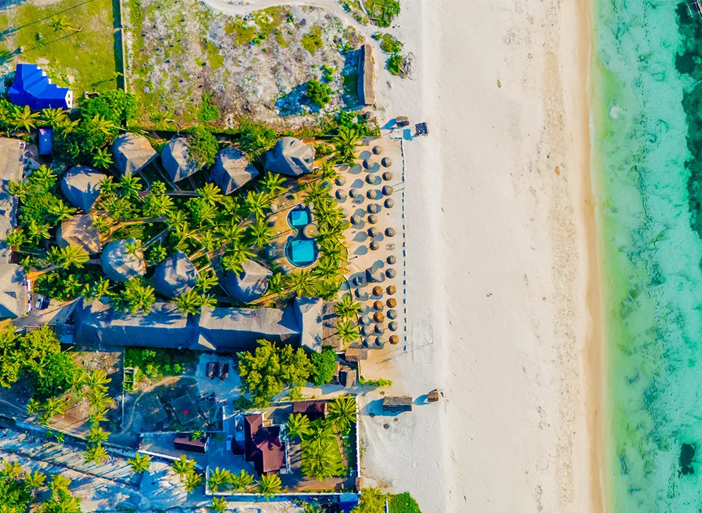 Waridi Beach Resort and Spa jest pięknie położony przy plaży na wschodnim wybrzeżu Zanzibaru, blisko urokliwej wioski Pwani Mchangani. Hotel ma bezpośredni dostęp do białej, piaszczystej plaży i turkusowego morza, co czyni go idealnym miejscem dla miłośników plaż. Ośrodek znajduje się w spokojnej okolicy, ale łatwo jest dostać się do pobliskich wiosek i lokalnych atrakcji, co daje możliwość zarówno relaksu, jak i odkrywania lokalnej kultury.