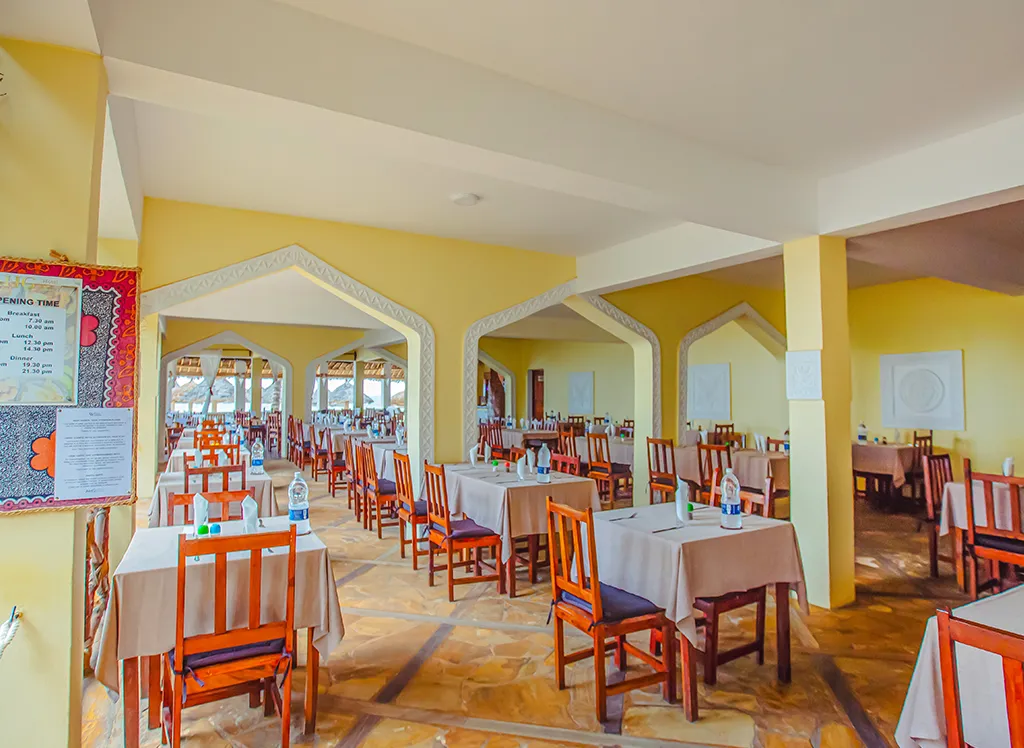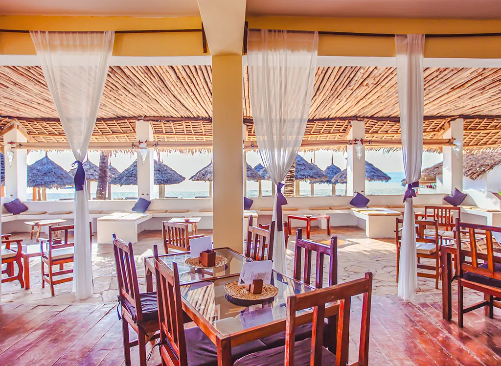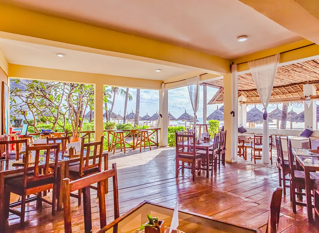 Waridi Beach Resort and Spa posiada kilka restauracji serwujących zarówno dania międzynarodowe, jak i lokalne, zanzibarskie specjały. Można zjeść posiłki z widokiem na plażę, gdzie świeże składniki zarówno z morza, jak i lądu są przygotowywane z dbałością o szczegóły. Hotel oferuje opcje bufetowe oraz à la carte, więc dla każdego znajdzie się coś odpowiedniego, a Ty możesz wybierać między relaksującymi posiłkami przy basenie lub bardziej kameralnymi kolacjami z widokiem na morze.