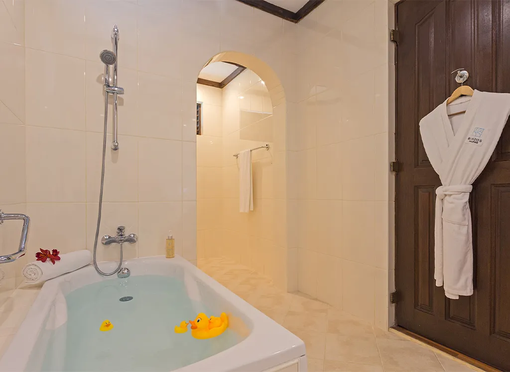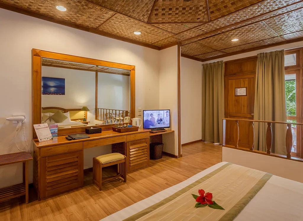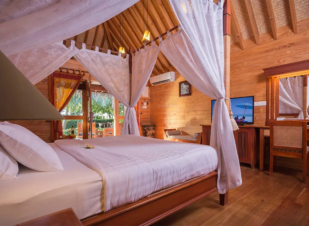 Na Bandos Island Resort & Spa zatrzymasz się w ładnych, przestronnych pokojach i chatkach urządzonych w tradycyjnym malediwskim stylu z zastosowaniem ziemistych kolorów, drewna i dachów krytych strzechą. Wszystkie pokoje i chatki są wyposażone w minibar, klimatyzację, sejf, taras oraz możliwość zamówienia obsługi pokoju.