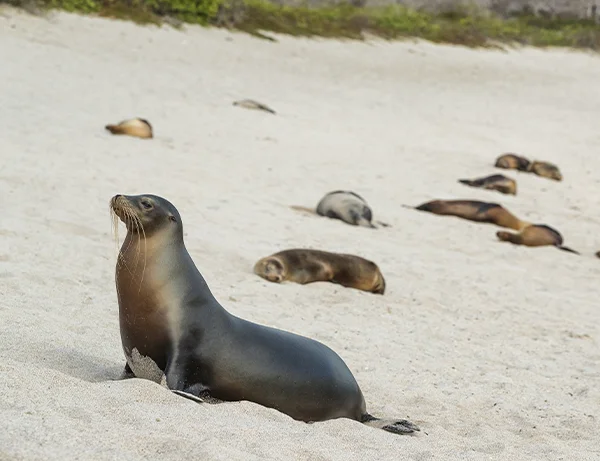 Po południu wycieczka prowadzi do La Lobería – plaży znanej z dużych lwów morskich. Są one ciekawskie i często pływają blisko, gdy nurkujesz w czystej wodzie. Możesz je również zobaczyć leżące na skałach lub wylegujące się w piasku. Wzdłuż plaży są także duże szanse na zobaczenie trznadli, fregat i kilku gatunków zięb Darwina. Między skałami żyją również legwany morskie – gatunek, który można znaleźć tylko na Galapagos.